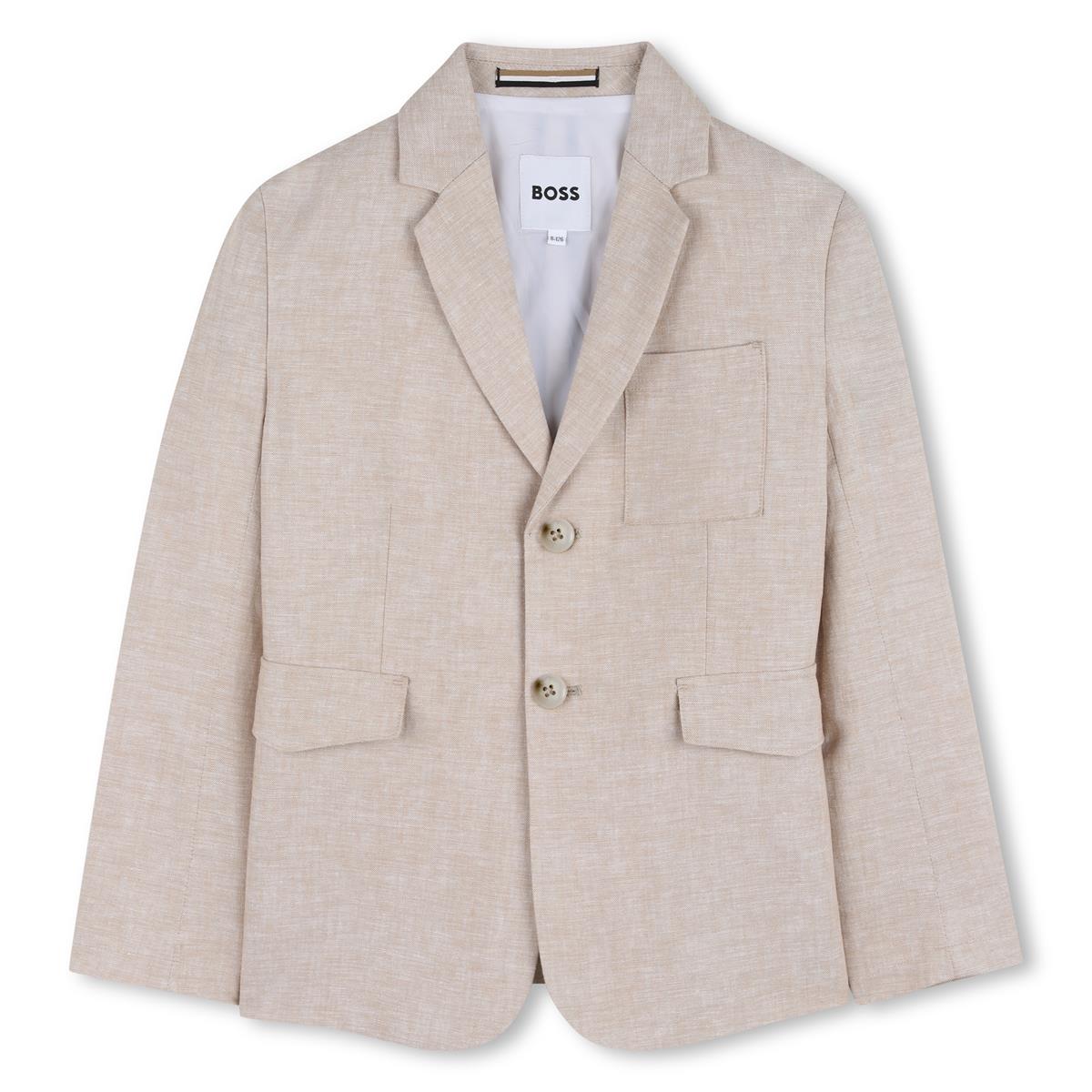 Chaqueta de traje de lino con 3 bolsillos delanteros.