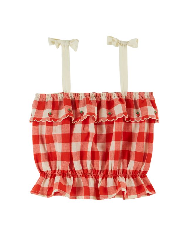Top con tirantes de algodón orgánico a cuadros vichy con grandes cuadros rojos y crudos para disfrutar del calor del verano con un look ligero,