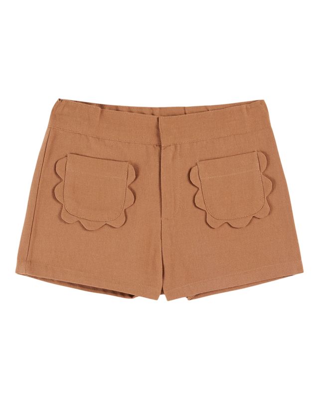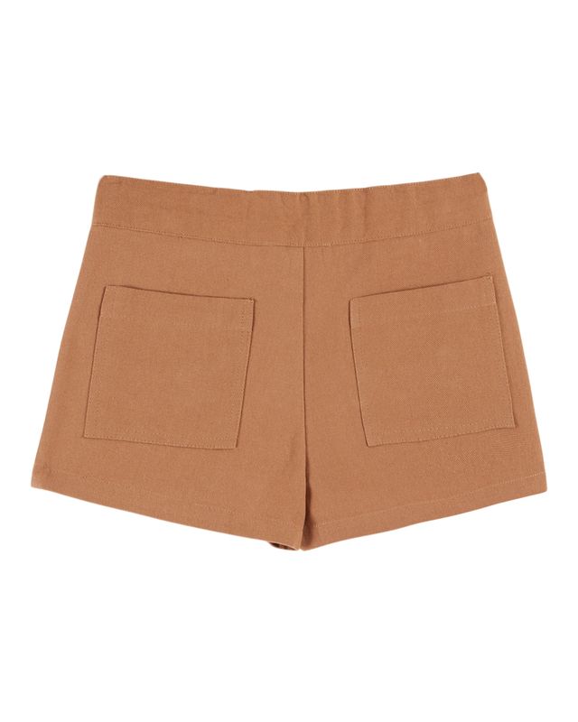 Pantalones cortos de mezclilla color caramelo y lona de algodón flexible.
