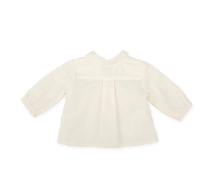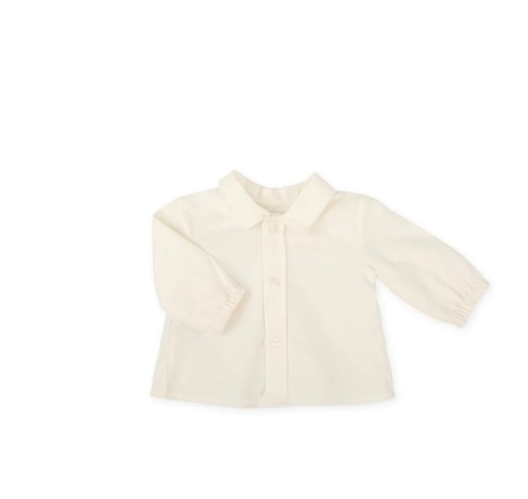 Camisa de viyela en color blanco químico, bordado logo y suave elástico en puños. Abertura delantera con botones. 100% Algodón