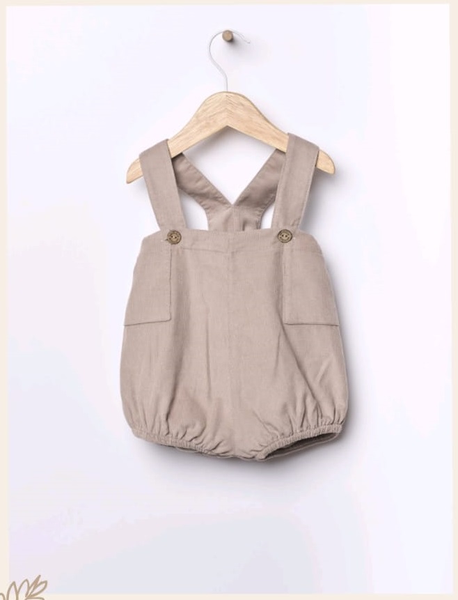 Pantalón corto con tirantes, ideal para bebés. confeccionado en algodón suave y forrado para mayor comodidad. Cuenta con cintura ajustable para mayor comodidad. Se abrocha en los tirantes con botones de coco.