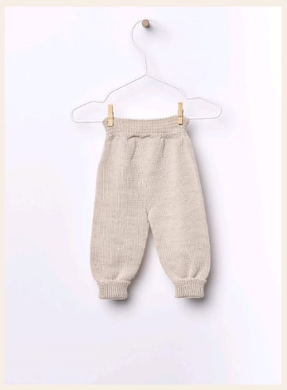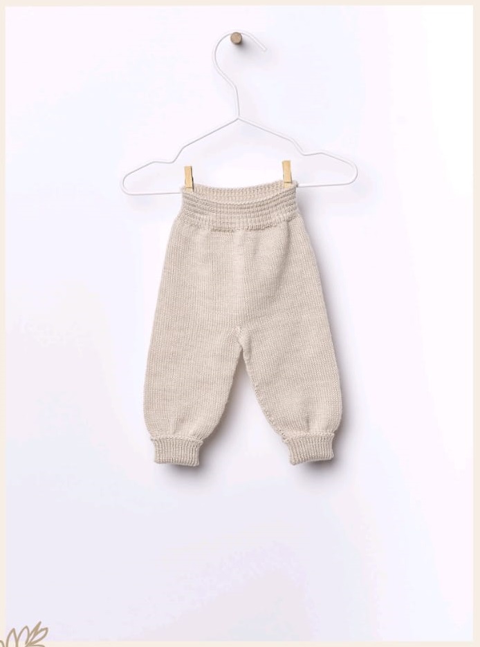 Pantalón tejido en una preciosa lana merino, ideal para bebés. La suave banda elástica proporciona la máxima comodidad, esta prenda no tiene costuras para la máxima comodidad de tu bebé.