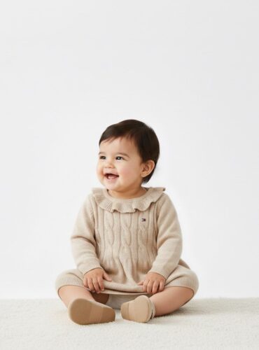 Este encantador conjunto incluye un pantalón, una cinta para el pelo y un jersey con volantes en los hombros. Mezcla de algodón, Con caja de regalo
