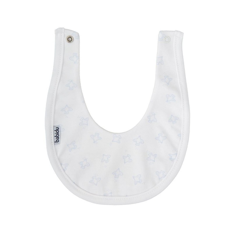 Este babero de 100% algodón es una prenda esencial para proteger la ropita del bebé en sus primeras etapas. Confeccionado en tejido suave y absorbente, presenta un delicado estampado de pequeños pajaritos en tono rosa sobre fondo blanco, ideal para un look tierno.
