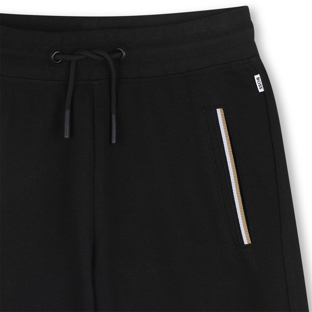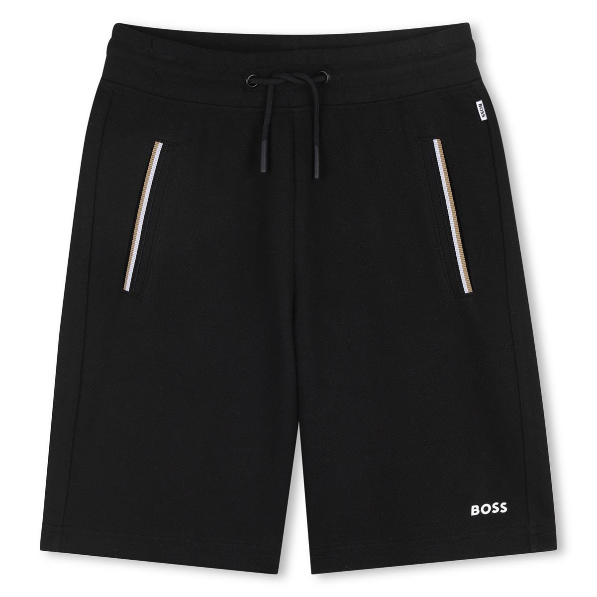 Bermudas de algodón, poliéster y elastano. Dos bolsillos delanteros con rayas icónicas. Logotipo de BOSS en la pernera. Cintura elástica.