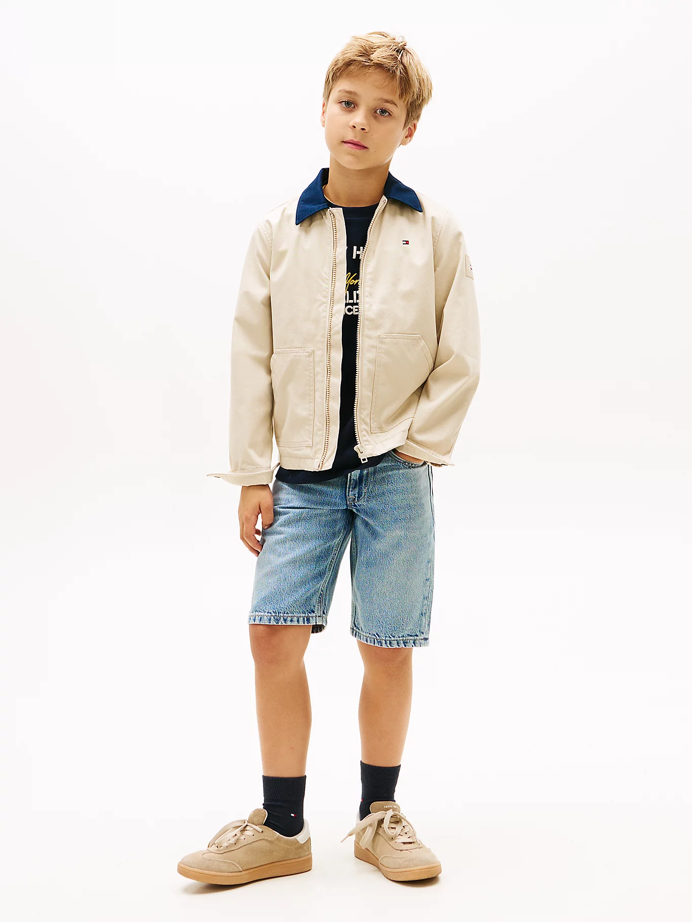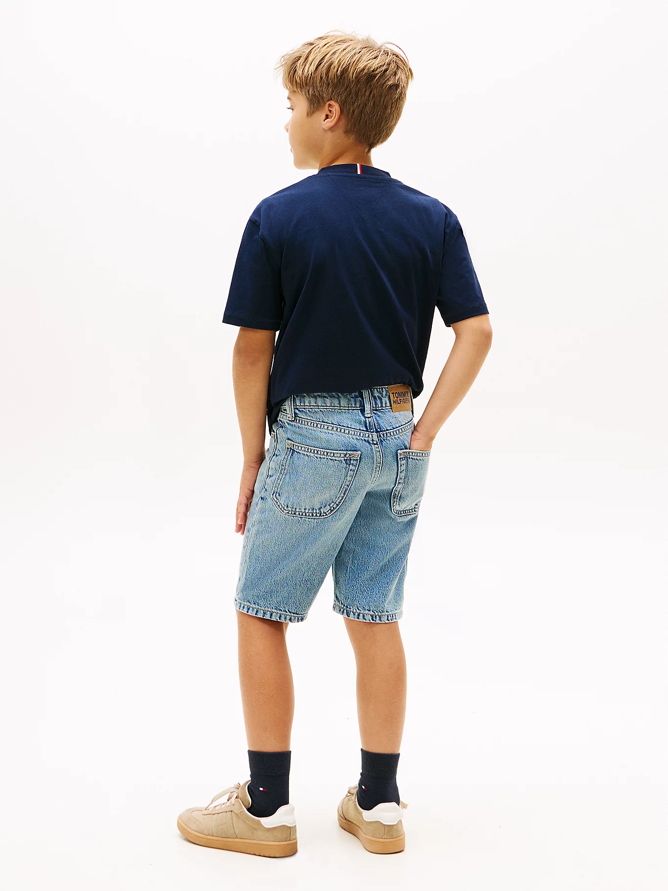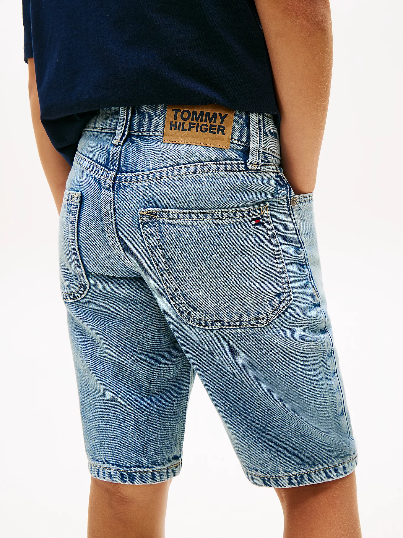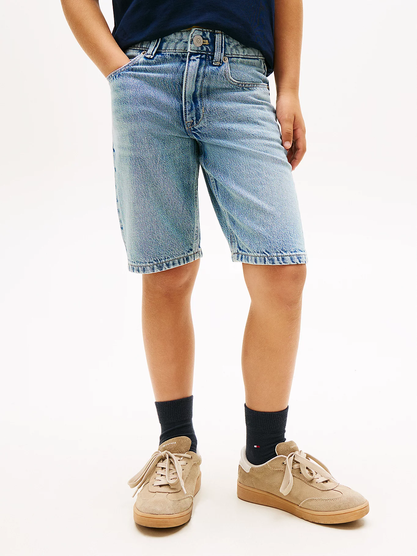 Pantalón corto clásico de cinco bolsillos, confeccionado en denim de mezcla de algodón y lyocell, destaca por su acabado auténtico y ligero.