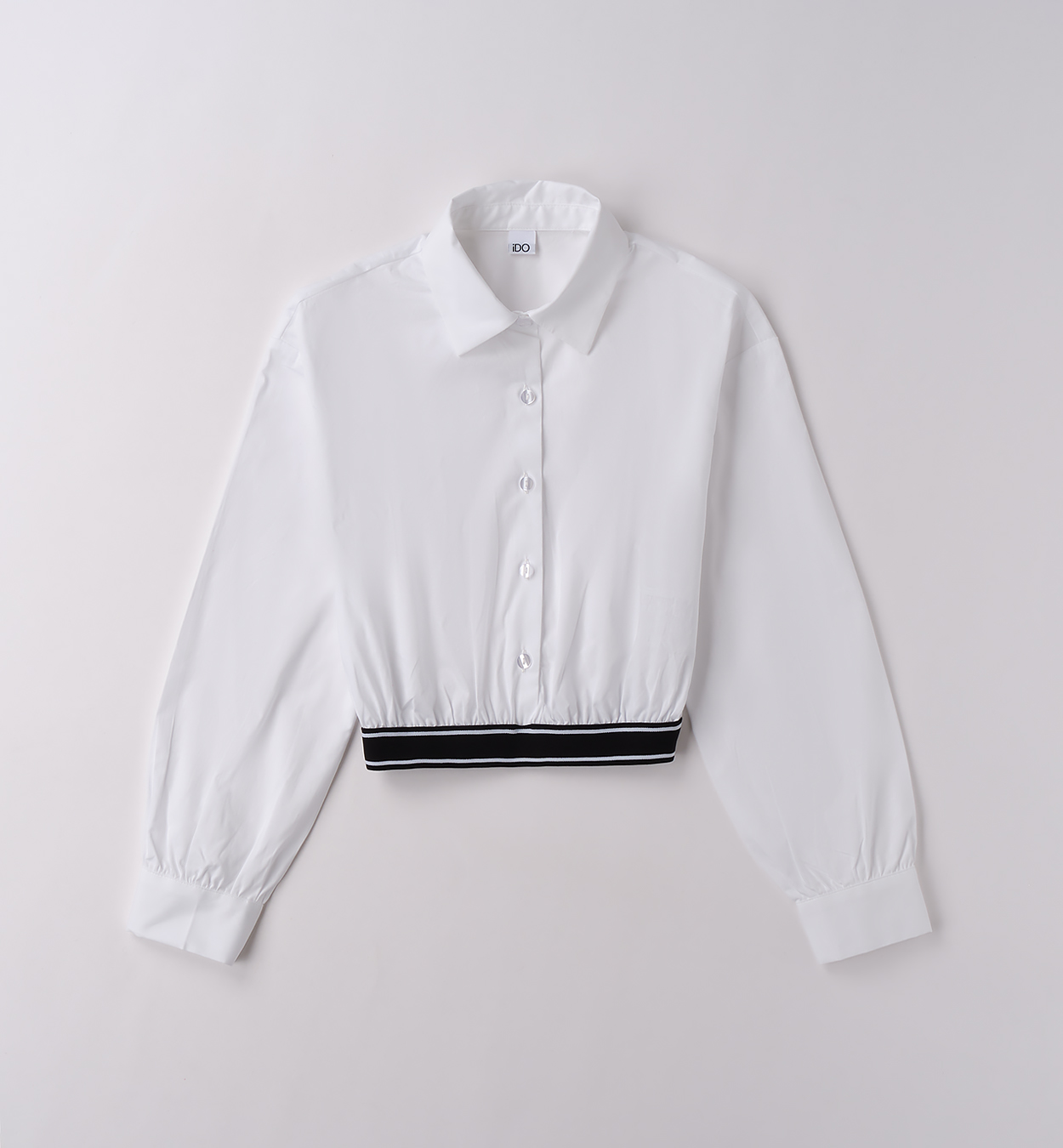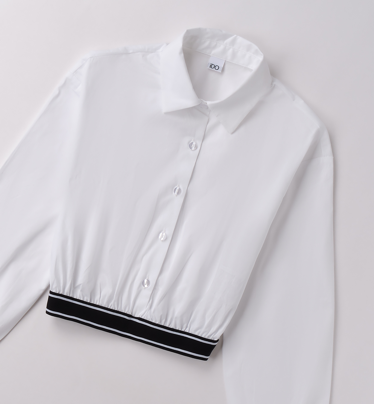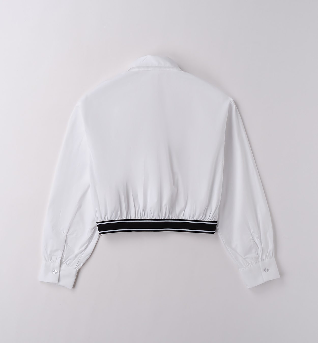 Camisa confeccionada en popelina de algodón elástico. Cierre de botones y bajo elástico.
