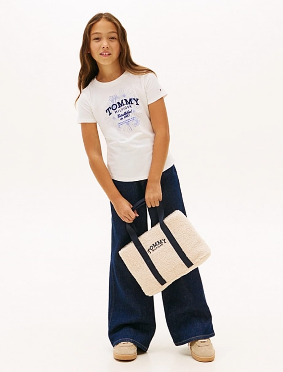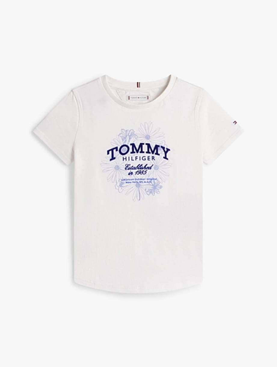 Alegre camiseta de corte slim con diseño floral está decorada con un logo NYC flocado. Punto de puro algodón, Cuello redondo, Cinta distintiva en la nuca