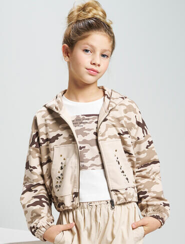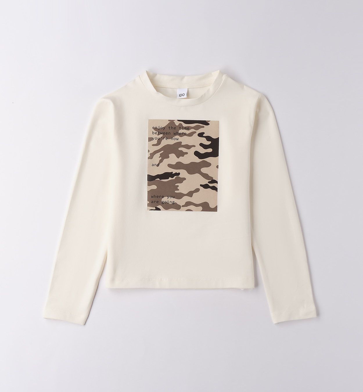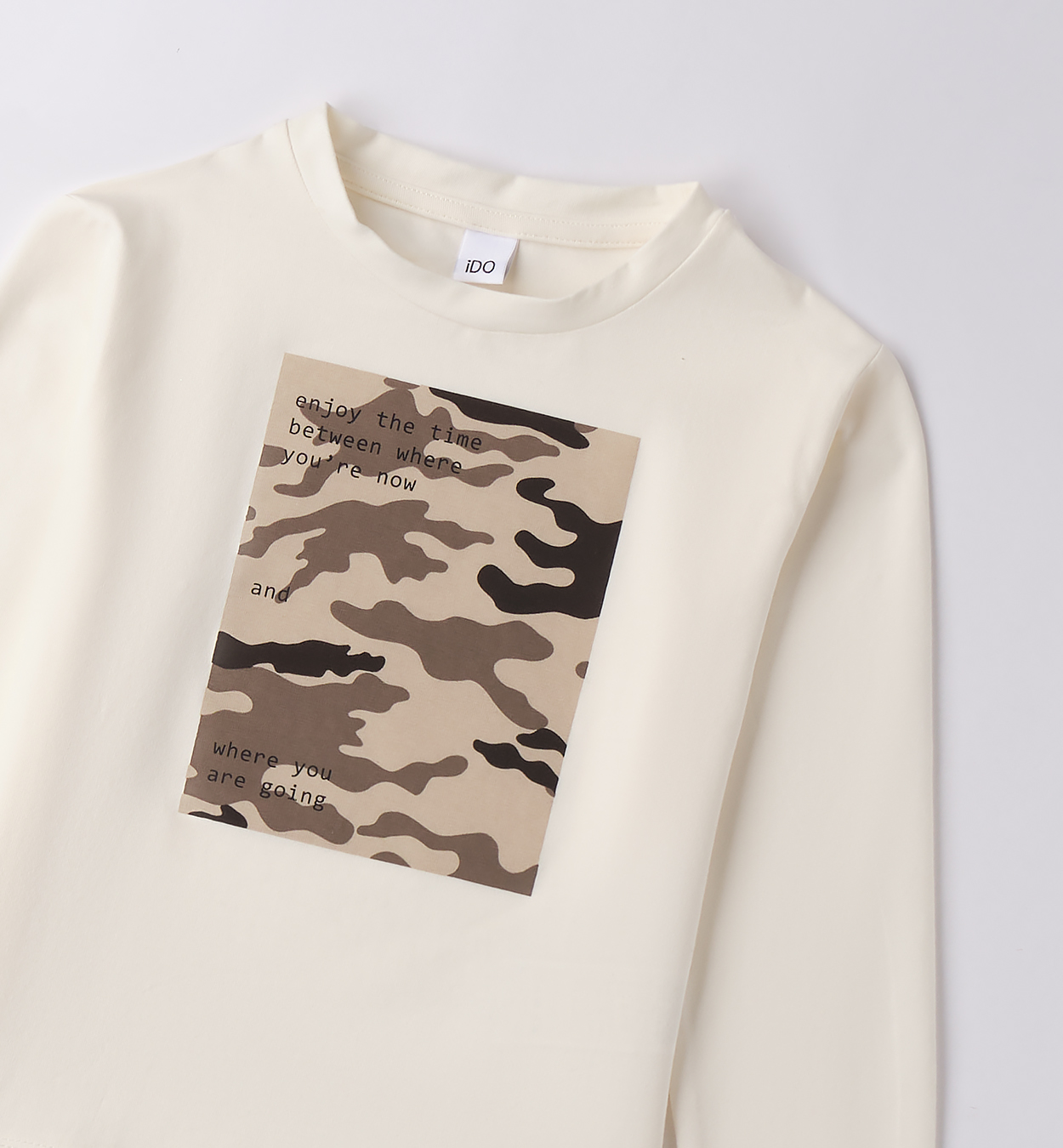 Camiseta confeccionada en jersey de algodón elástico con tacto melocotón. Estampado de camuflaje.