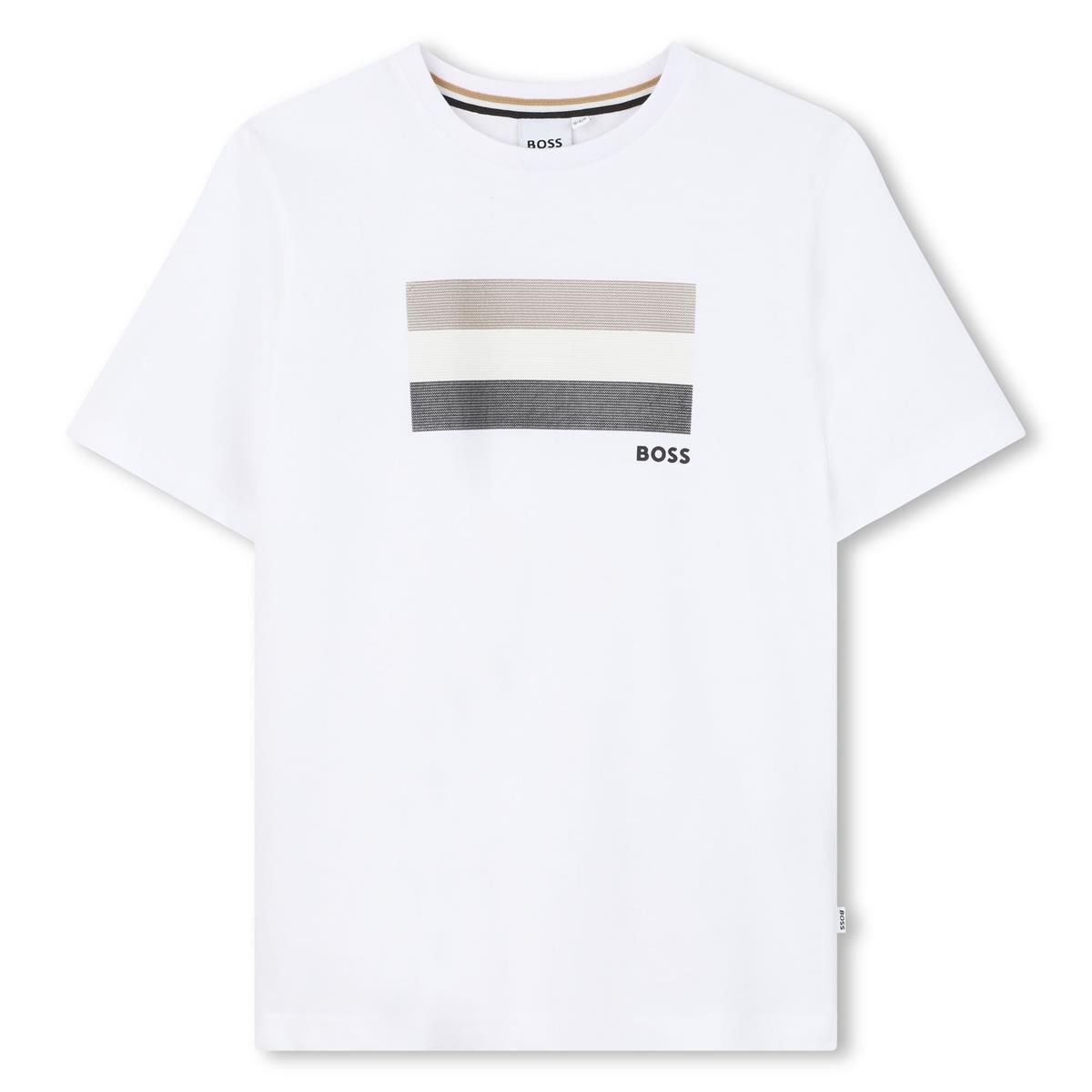 Camiseta de manga corta con rayas icónicas centradas en el pecho y el logotipo de BOSS