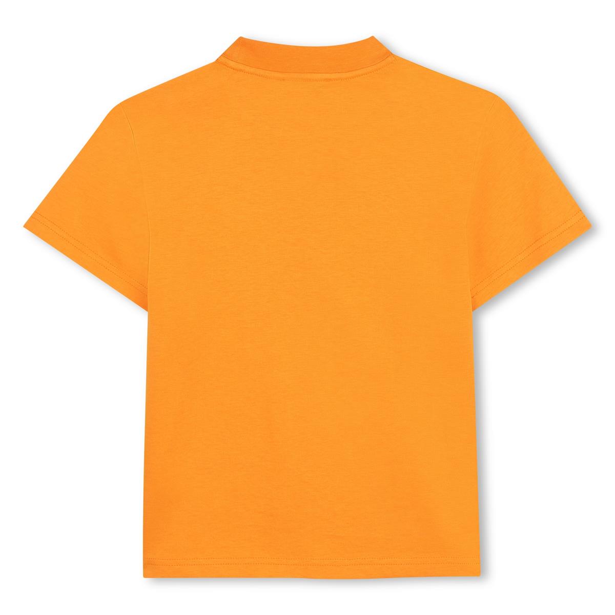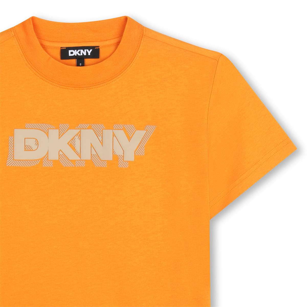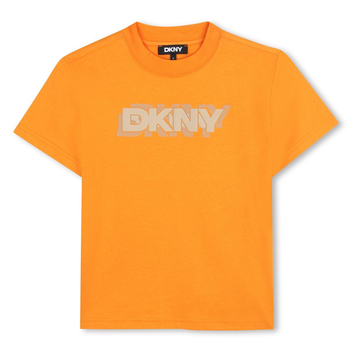 Camiseta de manga corta de punto 100% algodón de cultivo ecológico. Ilustración de DKNY estampada en la parte delantera con tinta en relieve.
