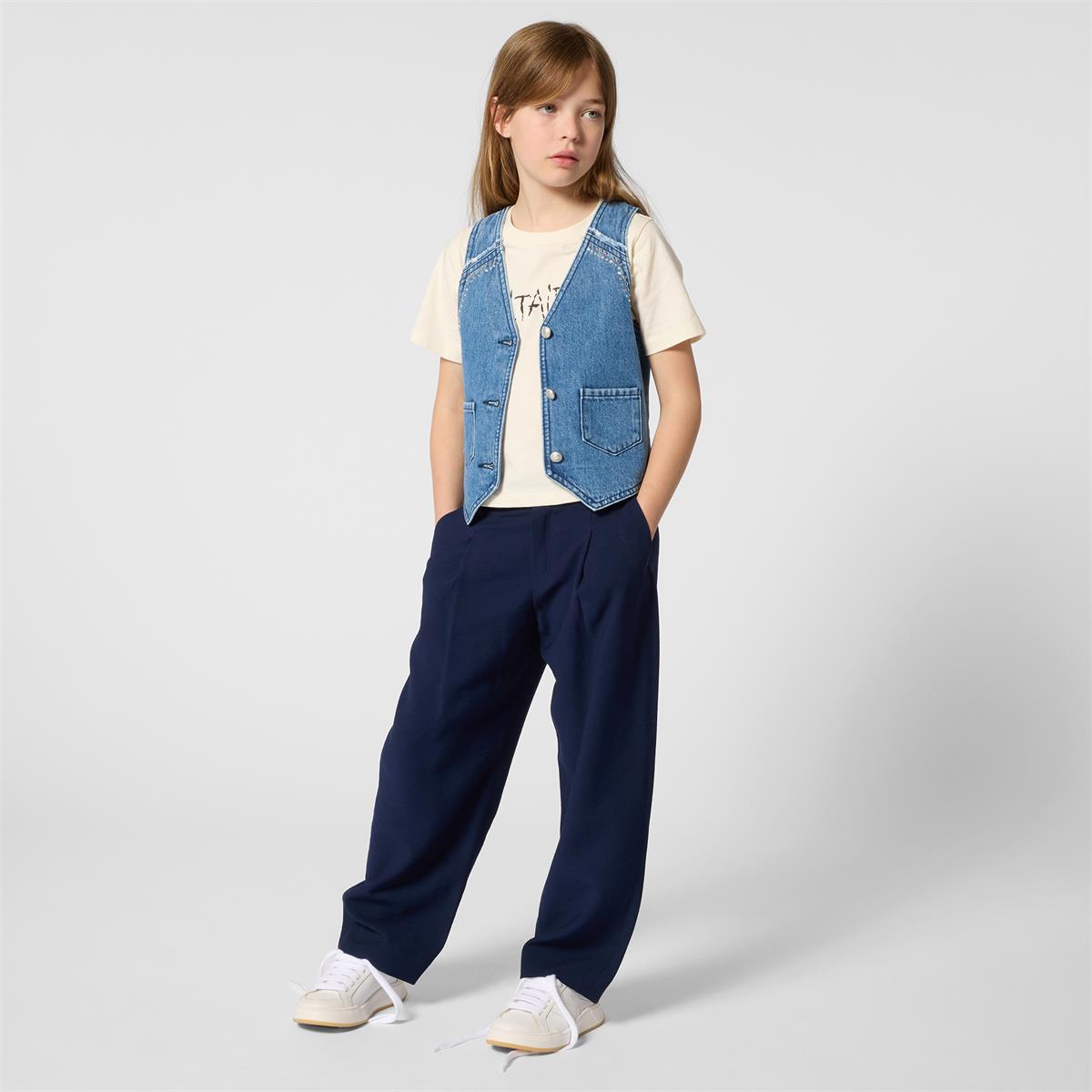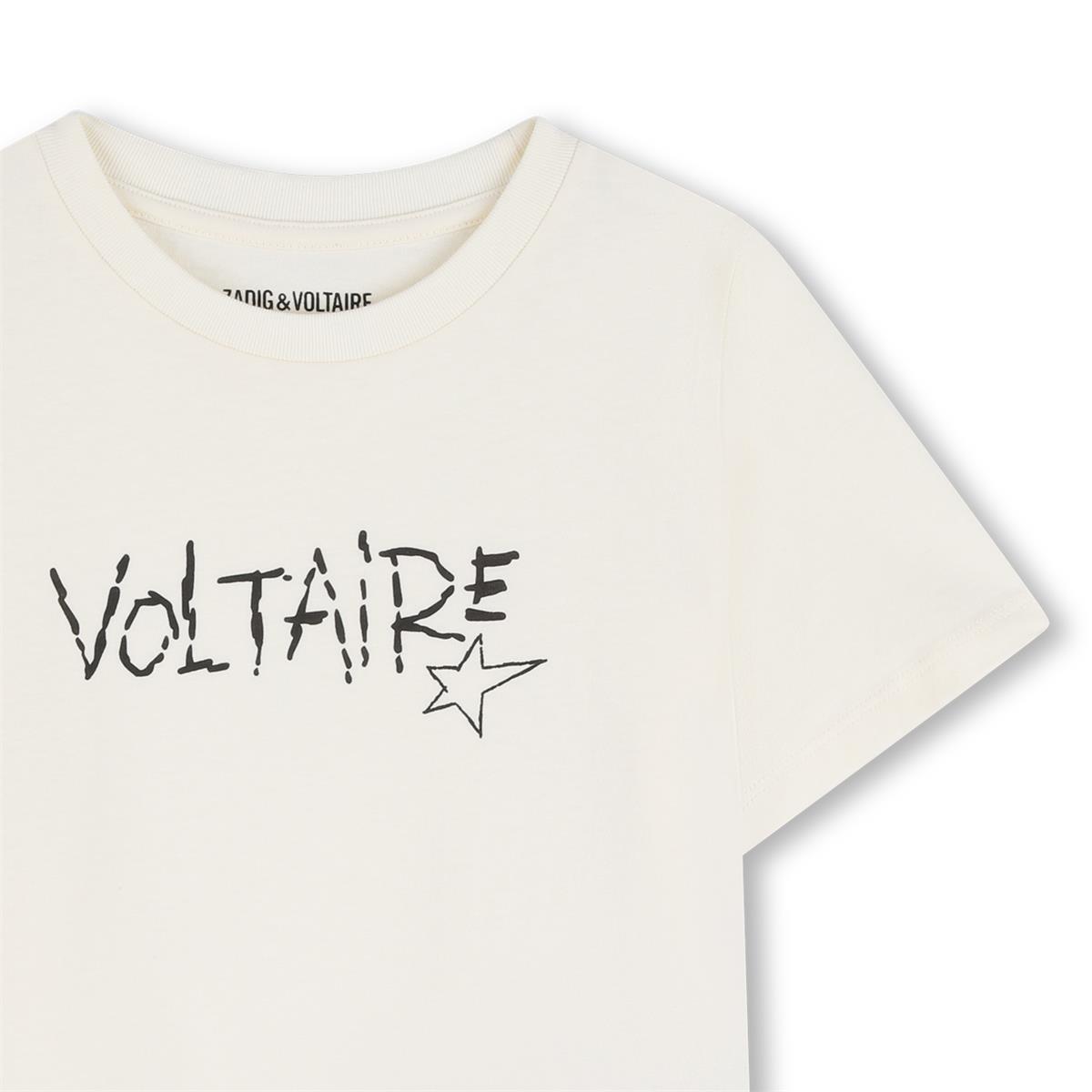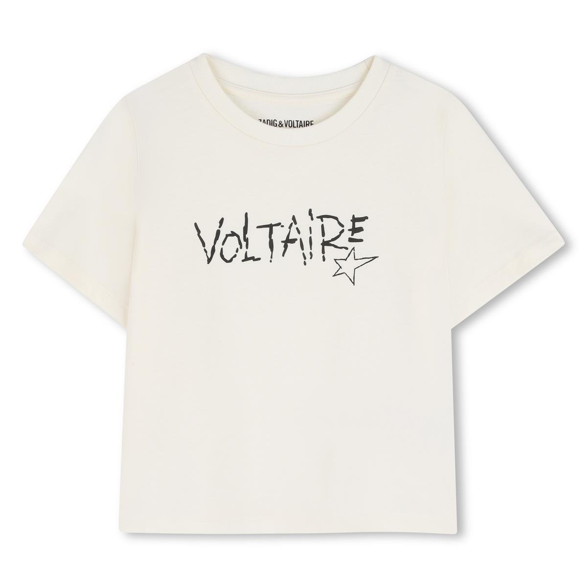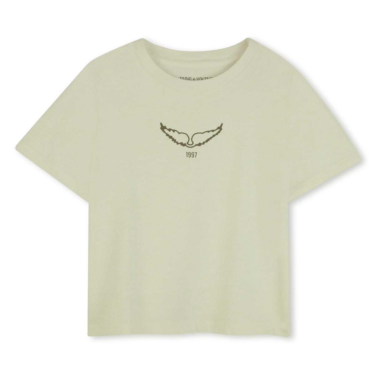 Camiseta de cuello redondo y manga corta con estampado frontal de un solo color.