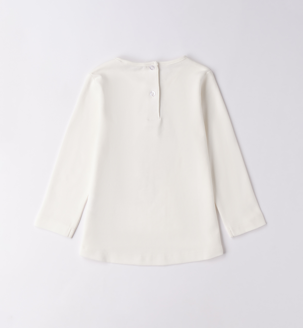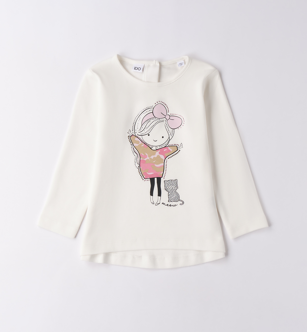 Camiseta maxi, confeccionada en 100 % algodón interlock. Con estampado y pedrería. Espalda redondeada y más larga.