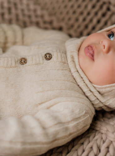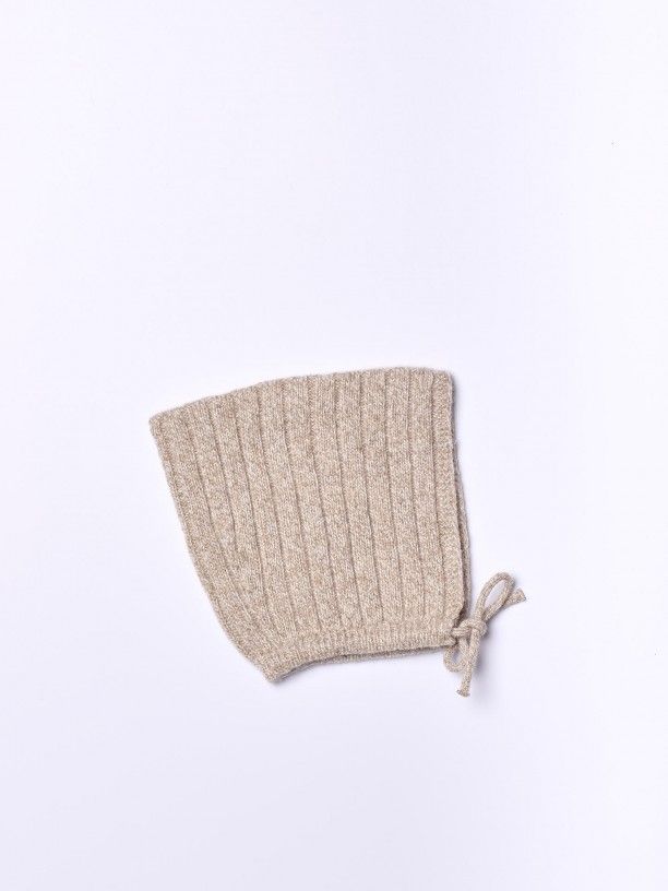 El gorro está tejido en una preciosa lana merino extrafina, tiene una cinta para atar bajo la barbilla. esta prenda no tiene costuras para la máxima comodidad de tu bebé.