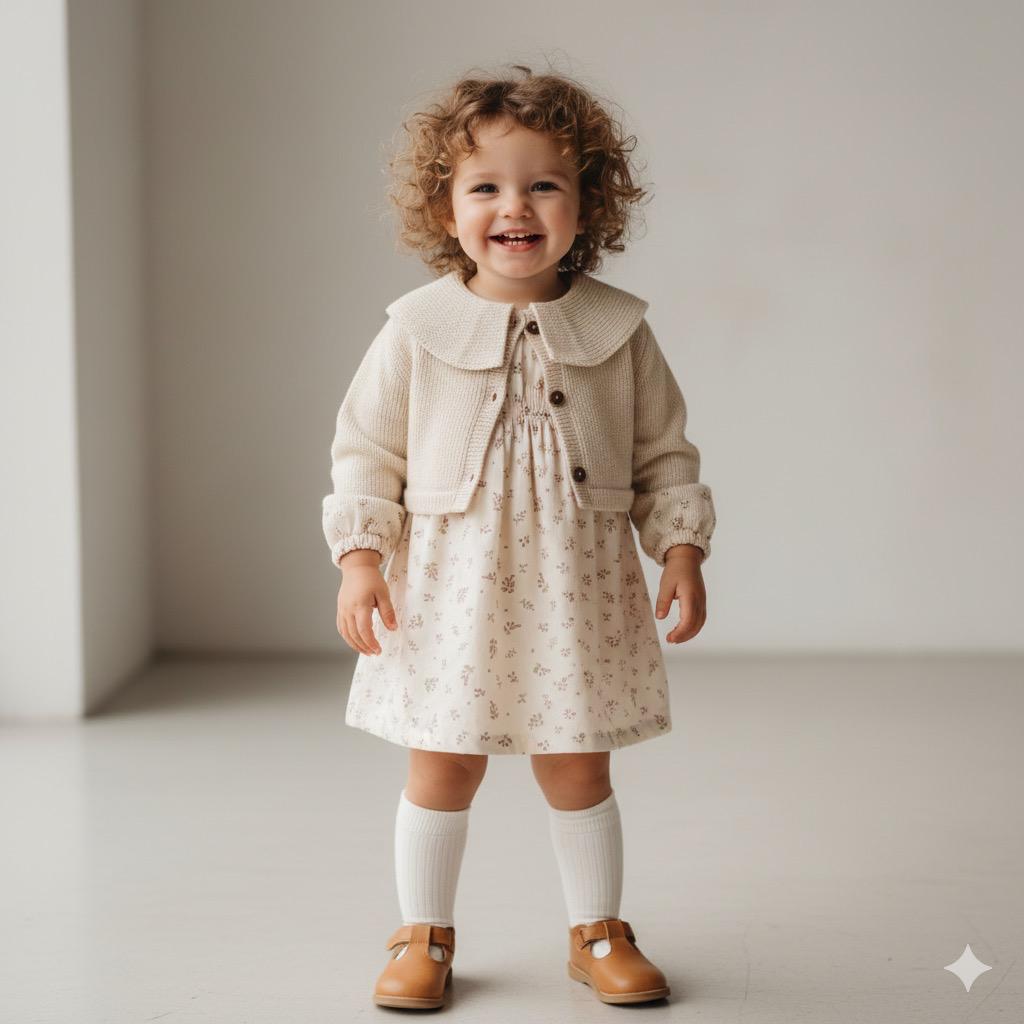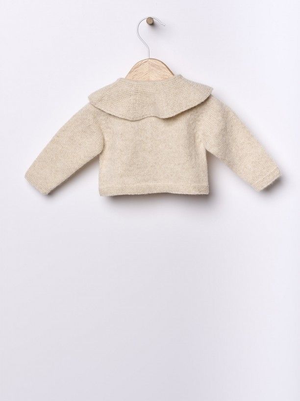 Cárdigan de manga larga tejido en una preciosa lana merino extrafina, ideal para bebés. El cárdigan se cierra por delante con botones de coco, esta prenda no tiene costuras para la máxima comodidad de tu bebé.