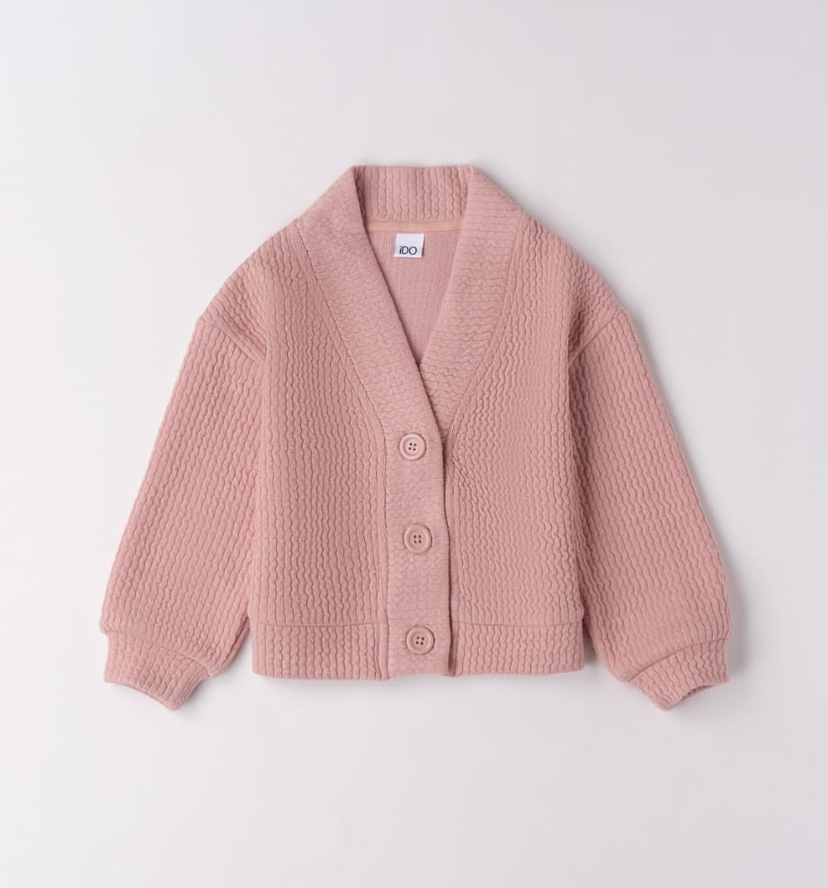 Conjunto de 3 piezas. Incluye cárdigan, camiseta y pantalones cortos. Camiseta de jersey elástico de algodón con tacto melocotón, con estampado de purpurina y pedrería. Cárdigan de punto con cierre de botones. Pantalones cortos de punto con bolsillos.