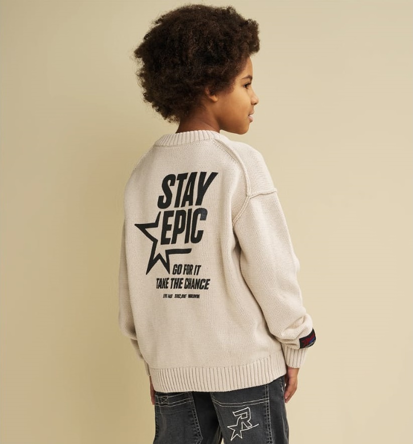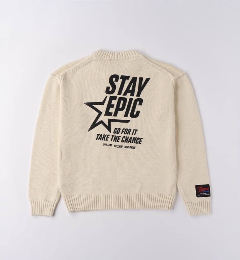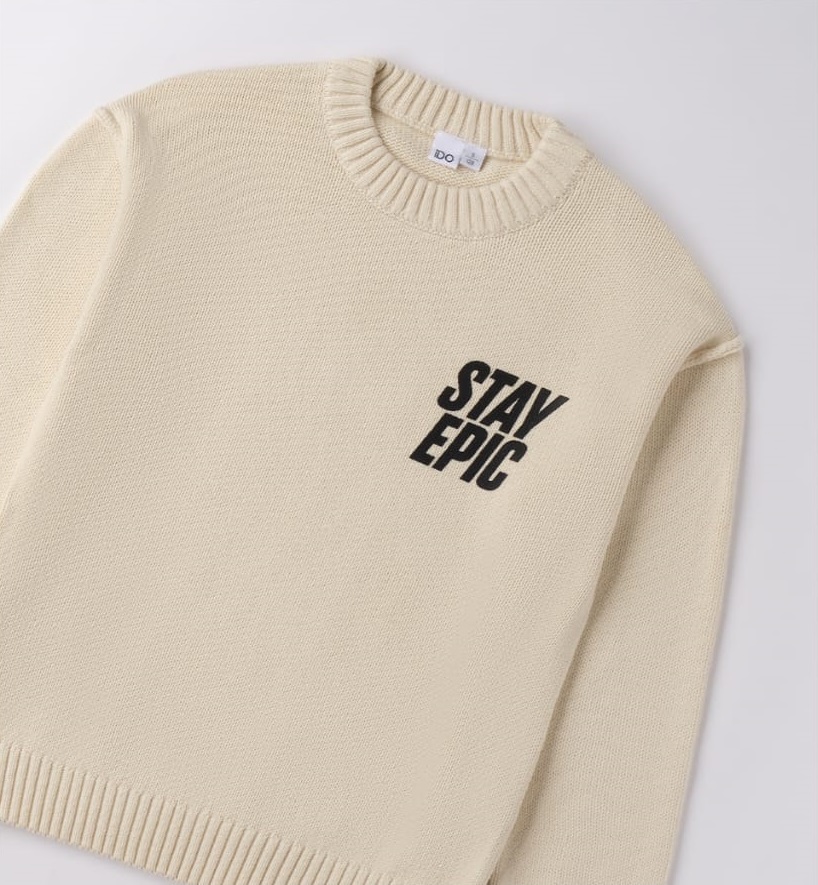 Suéter, confeccionado en tricot 100 % algodón. Decorado con estampado. Corte oversize