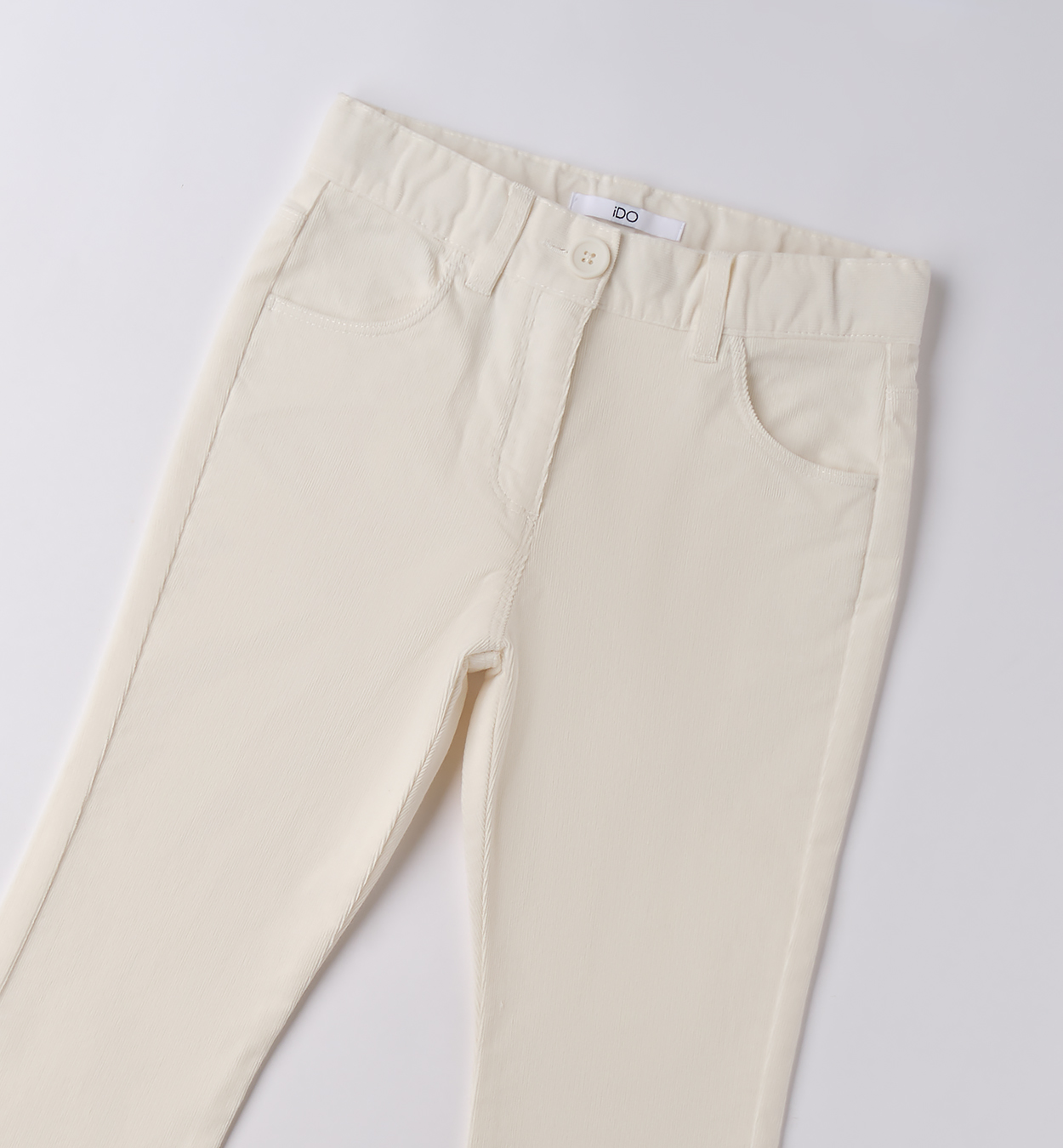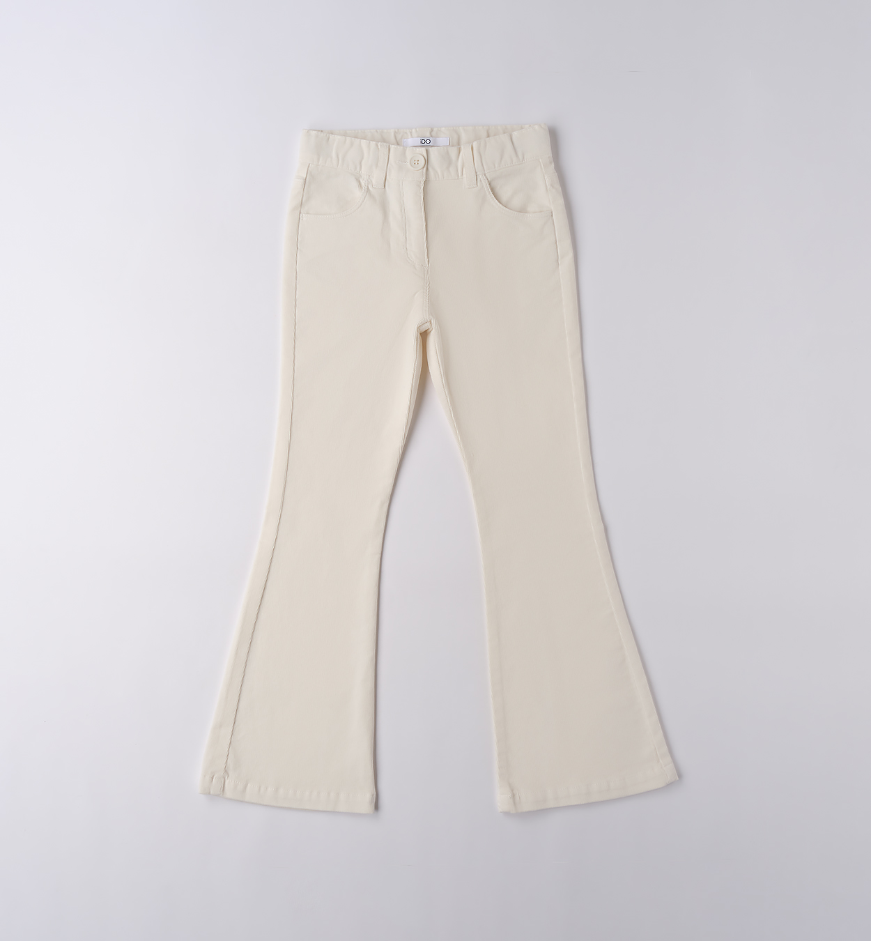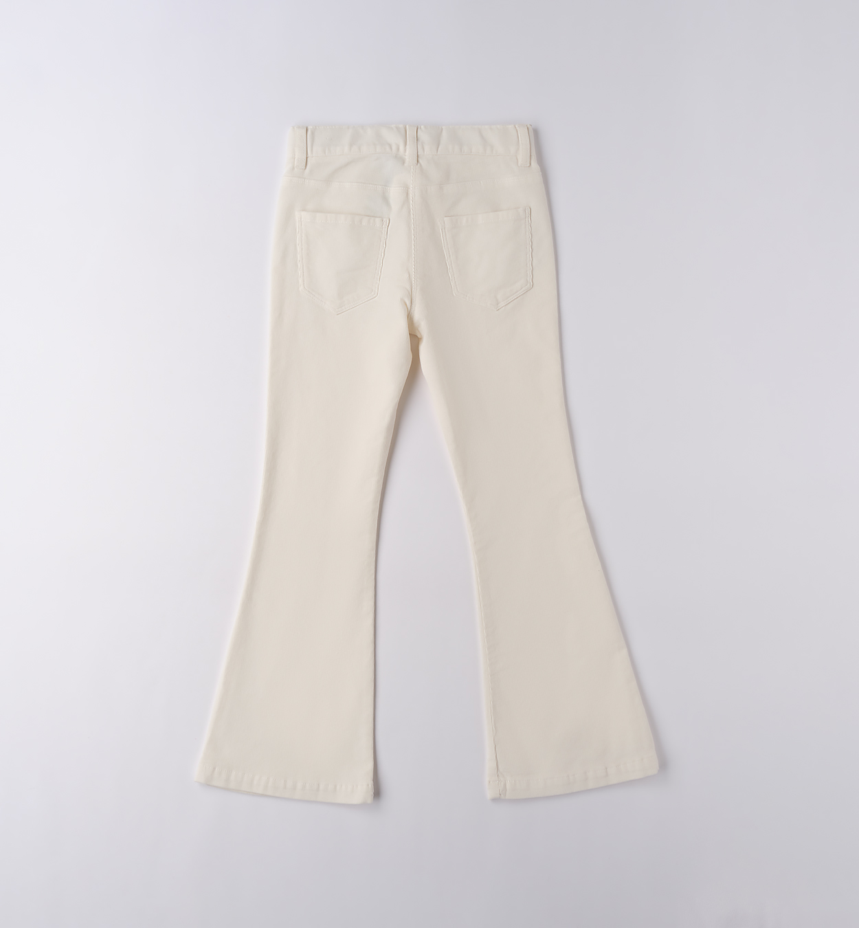 Pantalón confeccionado en terciopelo de algodón elástico. Cierre de cremallera y botón. Cintura ajustable con elástico interior con ojal. Bajo acampanado.