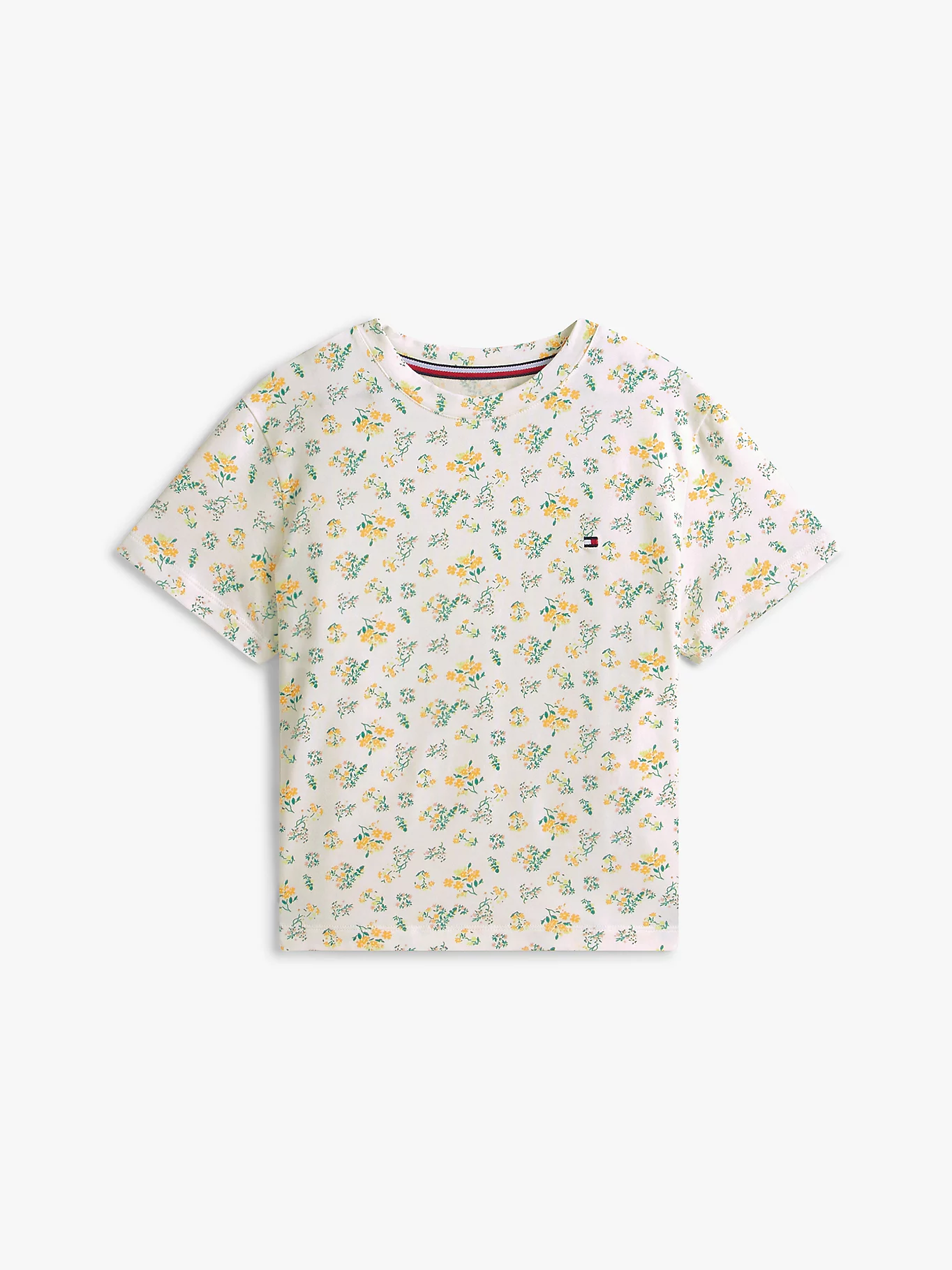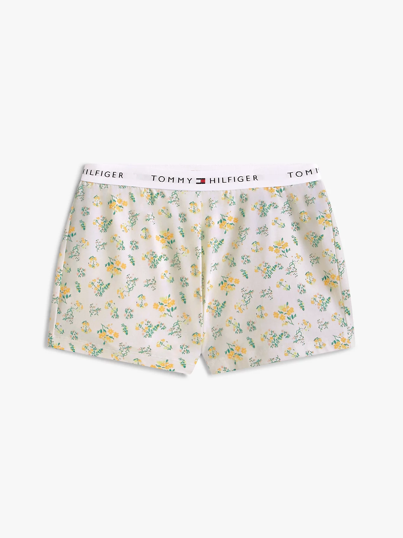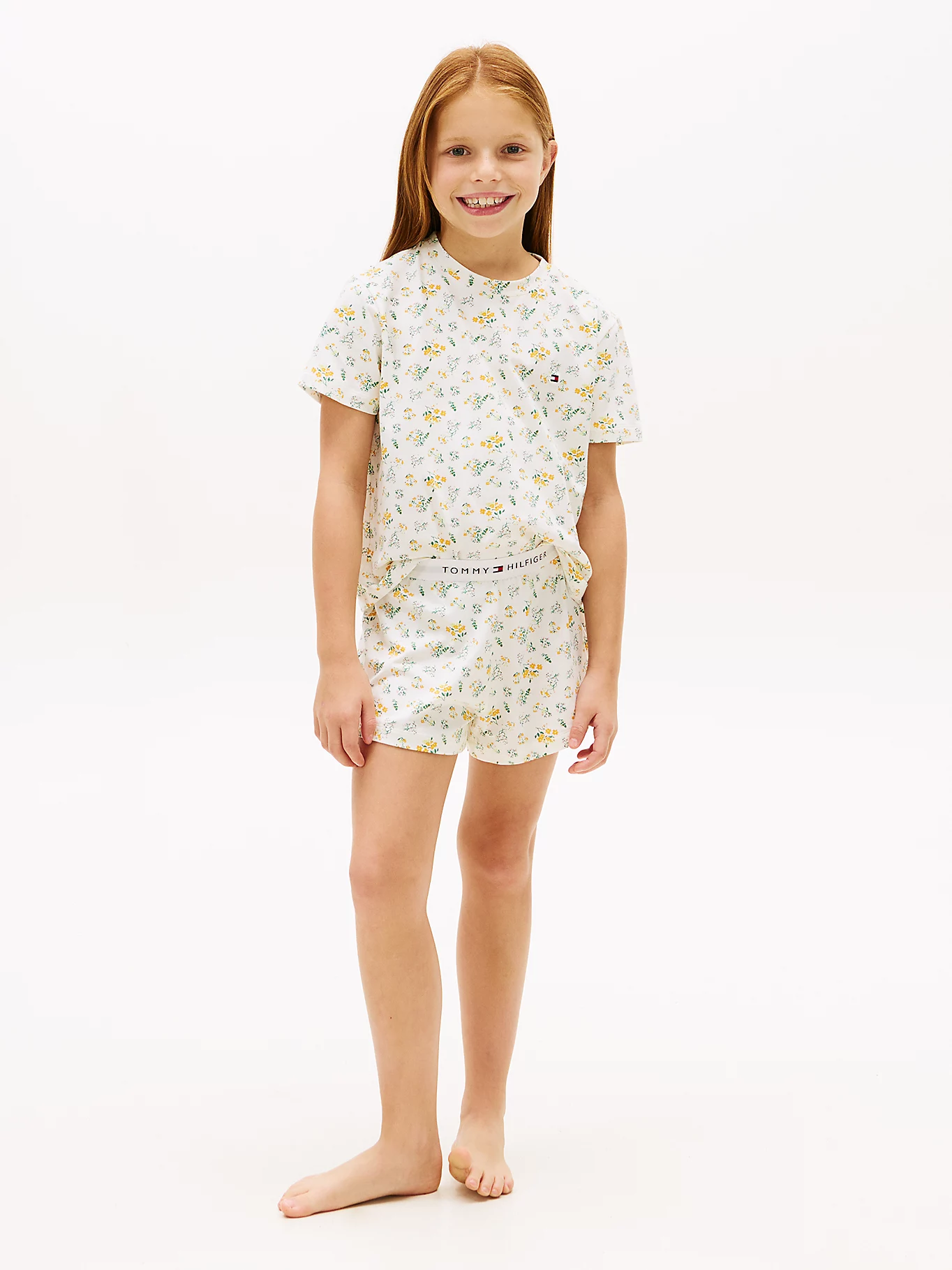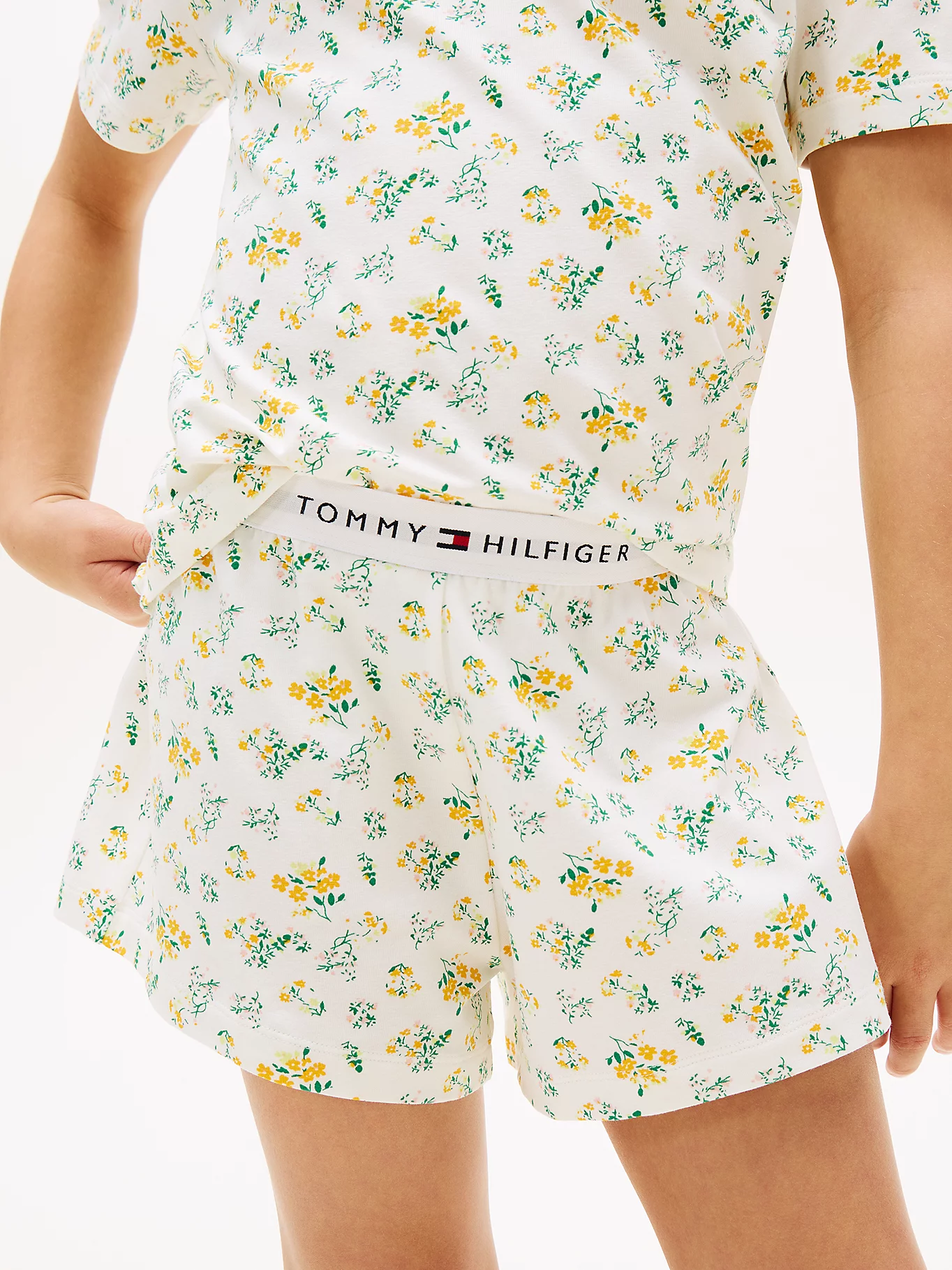 Este elegante pijama de algodón elástico, que incluye una camiseta y unos shorts, luce varios detalles distintivos y es perfecto para dormir con comodidad. Cuello redondo, Cinta distintiva en el interior del cuello, Inscripción de Tommy Hilfiger en la cintura elástica, Hombros ligeramente caídos
