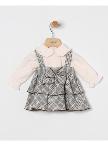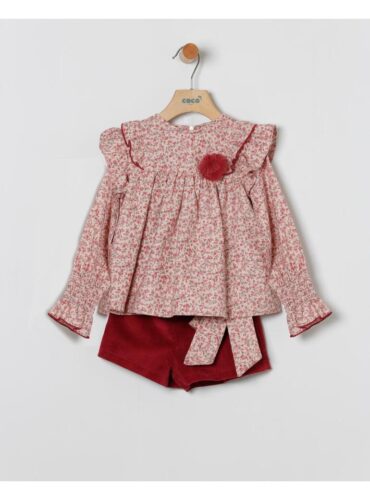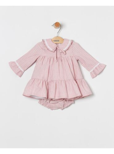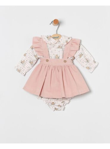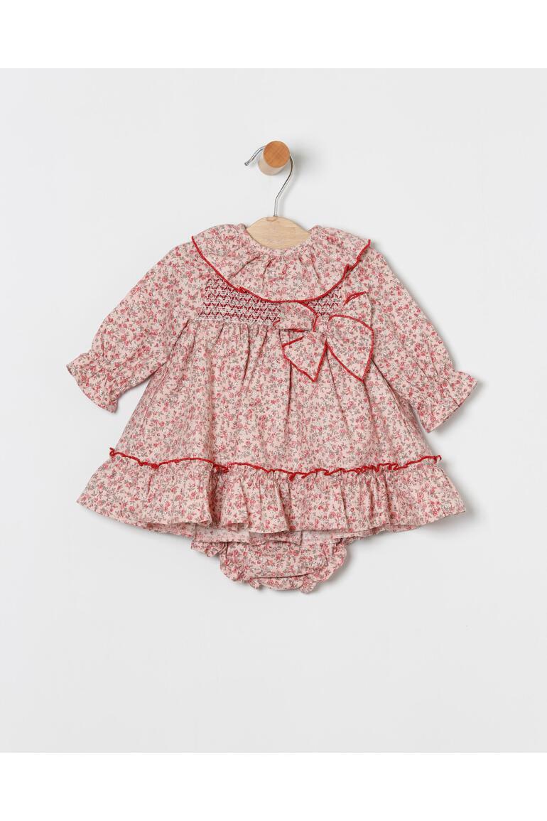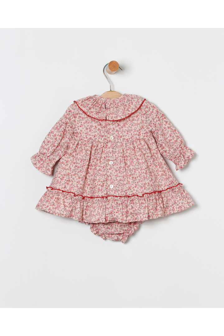 Vestido con estampado de tonalidades rosas y braga con el mismo diseño y tonalidades que el vestido