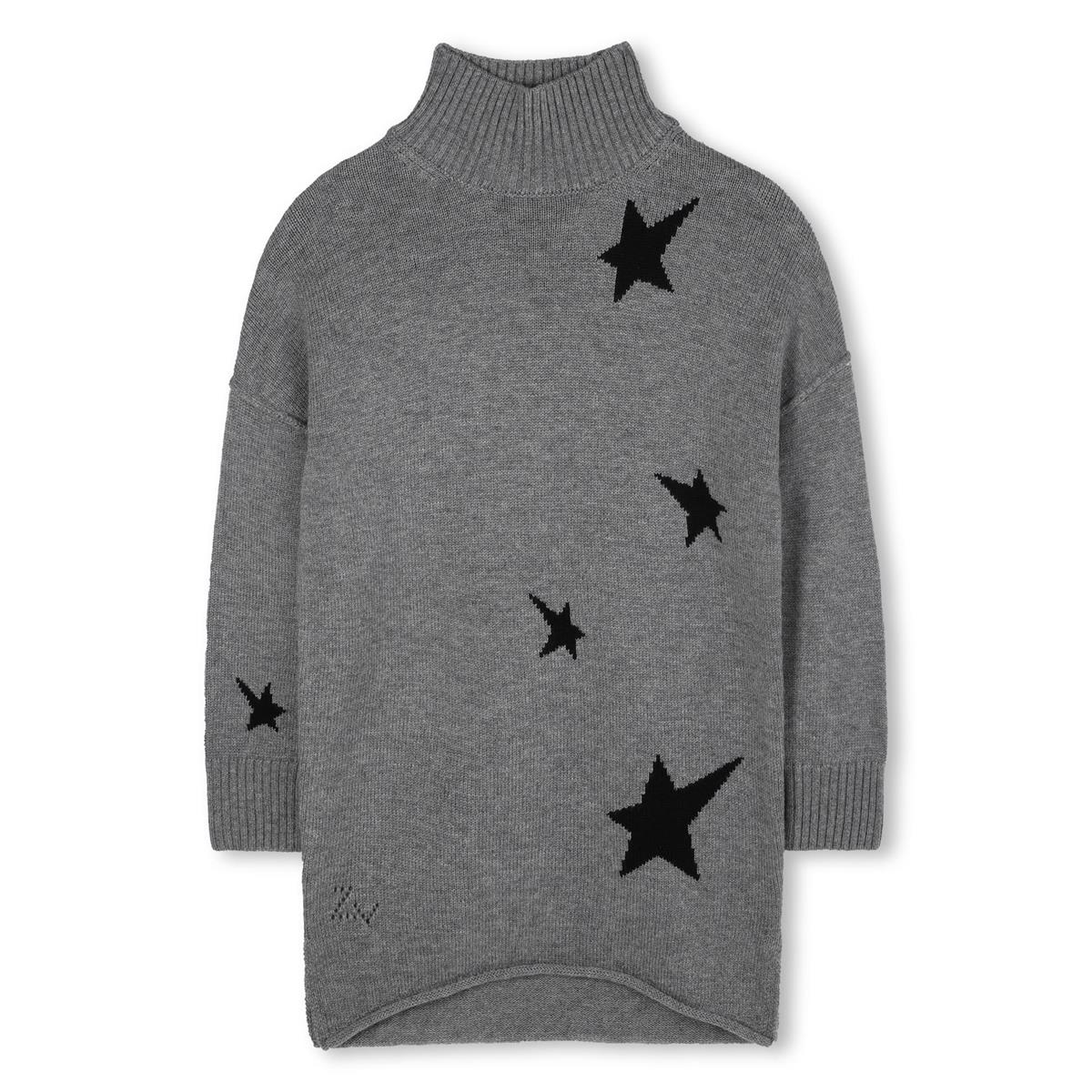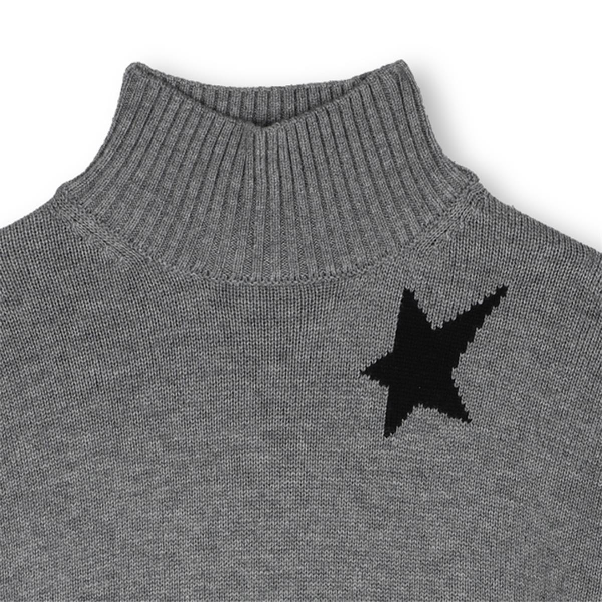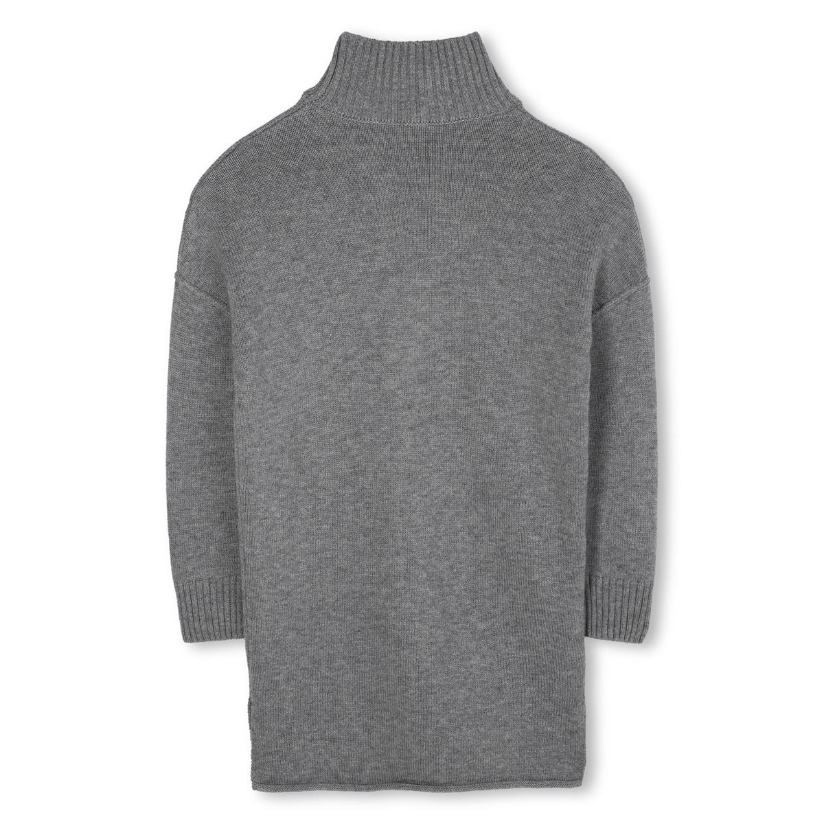 Vestido de punto, cuello alto, aberturas laterales, hombros caídos. 65% lana, 35% poliamida.